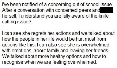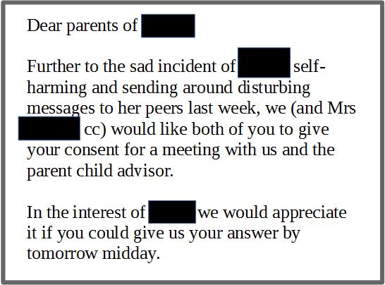 gave Pippa Rowe messages to pass on to the child via her new school, but
